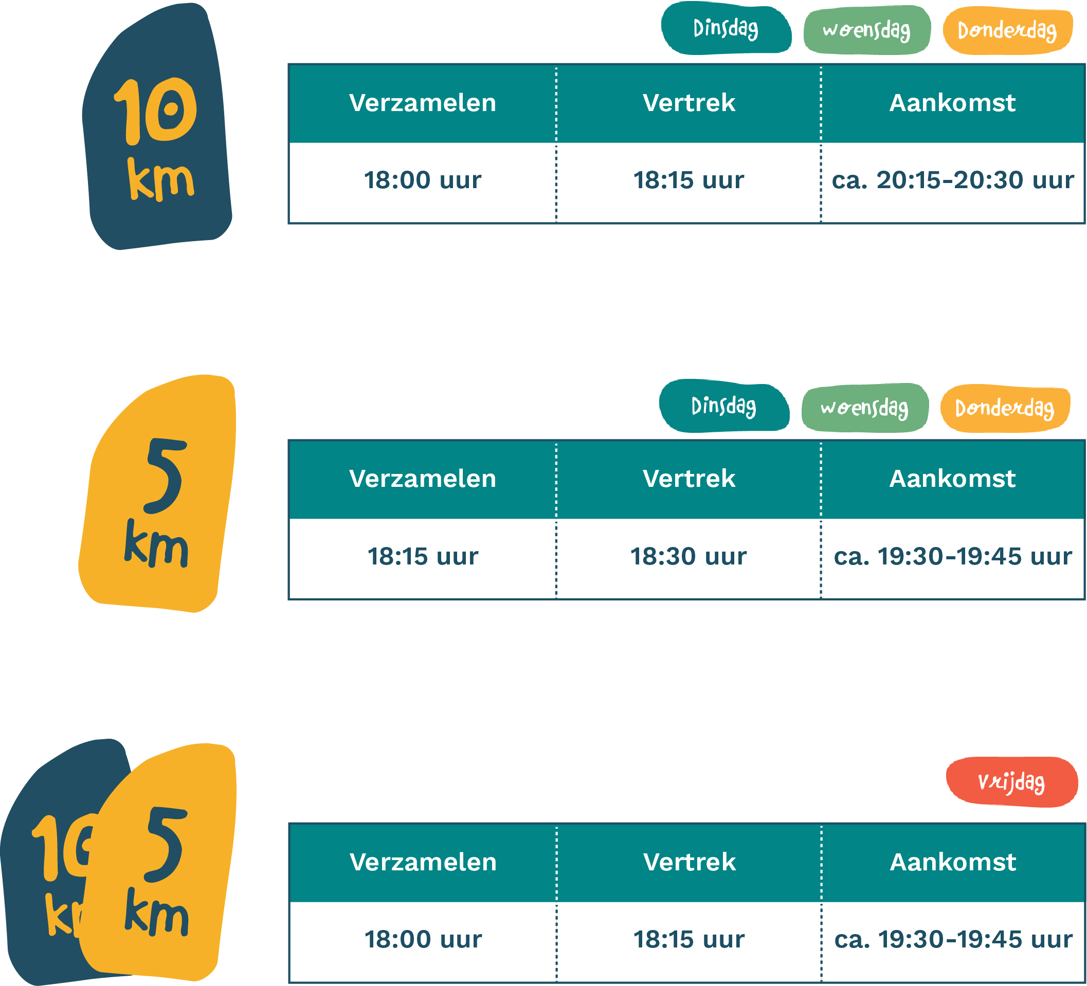 * Tijdstip van verzamelen is het moment waarop alle lopers aanwezig dienen te zijn op het binnenterrein van Castellum Hoge Woerd.